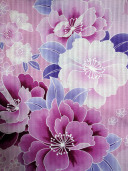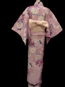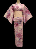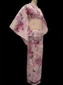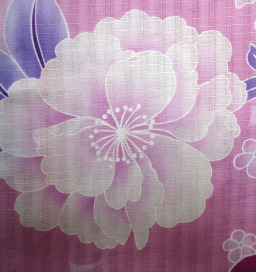 This gorgeous yukata has a light purple base color with a detailed white and violet peony flower pattern. The bold peony pattern gives this yukata a daring but elegant personality.