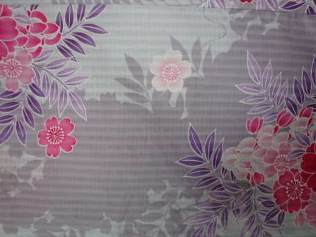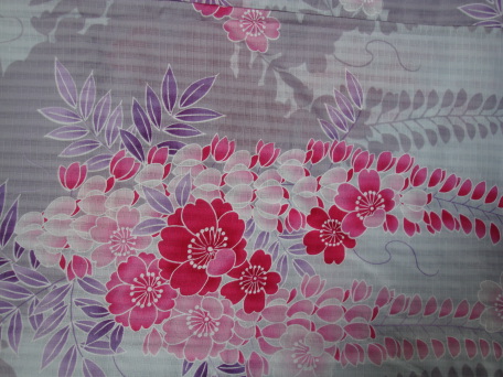 淡いグレー地に、ピンクの桜の模様の浴衣です。グレーと桜の花のコントラストが美しく、モダンで清楚な印象に!