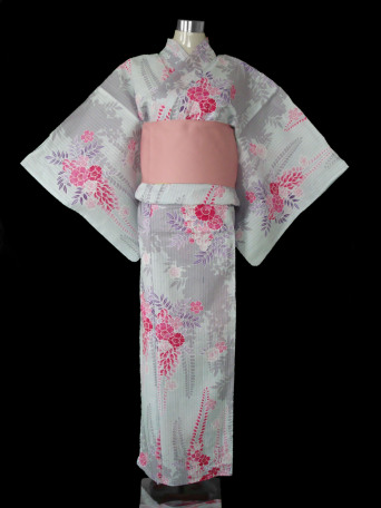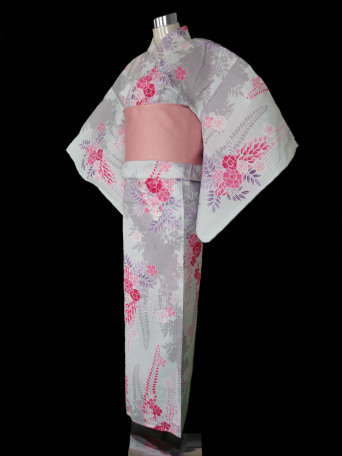 This pure white and grey Kimono Yukata has beautiful flower pattern that is detailed yet clean and uncluttered. Excellent choice for a minimial sophisticated appearence.