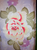 A wonderfully fresh light blue and white base color has beautifully designed pastel white and red rose patterns that is surrounded by perfect green and white leaves. Perfect for any occasion.