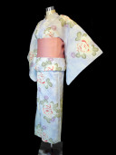 Blue & White flowers Yukata + Belt (y037b) |