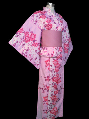 This Kimono Yukata is beautifully crafted from a light pastel pink base color and carefully decorated with an elegant selection of small rose flowers. The detail in the rose patterns is magnificent creating a delicate pink girly appearance.
