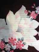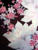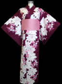 Stunning maroon red kimono yukata with large beautiful white flower pattern that is contrasted by small delicate pink sakura flowers. A gorgeous yukata for all occasions.