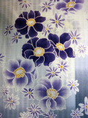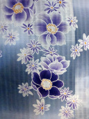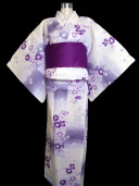 Beautiful white and light purple kimono yukata delicately decorated with small purple and white sakura flowers. The light purple gradients against the white base color create a cool and refreshing appearance.