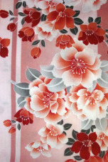 Beautiful light pastel pink base color with dark pink stripes is wonderfully decorated with reddish pink plum flowers with adorable grey petals. Perfect for a delicate pink cute appearance.