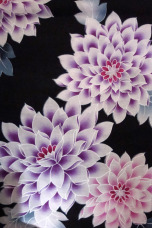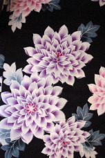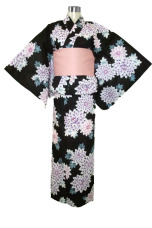 Stunning black kimono yukata has large beautiful flower design placed perfectly against the light green petals. A wonderful yukata with a bright and attractive floral design.
