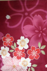 Beautiful bold red traditional Japanese kimono yukata imported directly from Japan, has a bright red base color with subtle cherry blossom base. This is contrasted beautifully against the small cute red and white sakura flower designs.