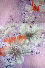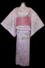 Beautiful pastel pink traditional Japanese kimono yukata, imported directly from Japan has a light pastel pink base color with wonderfully detailed sakura flower pattern designs that include a touch of glitter