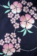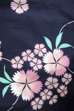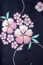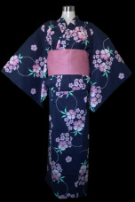 Beautiful dark blue traditional Japanese kimono yukata, imported directly from Japan has gorgeous small pink sakura flower pattern designs with a touch of green leaves.