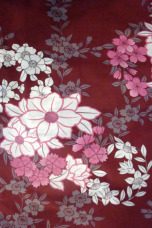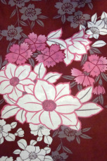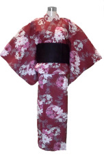 Gorgeous dark red traditional Japanese Kimono Yukata, imported directly from Japan is finely detailed white, pink and grey sakura flower pattern designs.