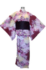 Beautiful dark red traditional Japanese Kimono Yukata imported directly from Japan is beautifully decorated with wildly detailed flower patterns.