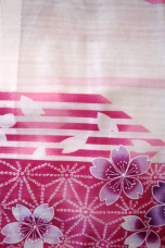 Gorgeous white traditional Japanese Kimono Yukata imported directly from Japan has a beautiful pink stripes with delicate purple, pink and white sakura flower designs. A truly unique design.