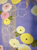 Beautiful light purple Japanese Kimono Yukata imported directly from Japan has cute yellow flowers with olive green leafs.