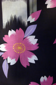 Beautiful Japanese Kimono Yukata has wonderful black base color contrasted with a large pink floral design.