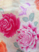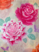 Beautiful light Japanese Kimono Yukata has wonderful light pink base color contrasted with a pink, orange and white floral design.