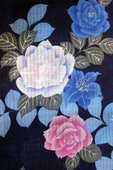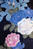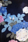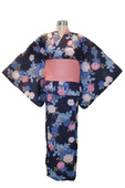 Beautiful Japanese Kimono Yukata has wonderful darke blue base color contrasted with white, blue and pink floral design.
