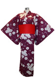 Beautiful Japanese Kimono Yukata has wonderful maroon base color contrasted with white floral design.