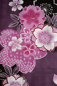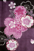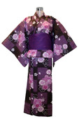 Beautiful Japanese Kimono Yukata has wonderful purple and black checkered base color contrasted with a purple floral design.