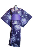 Beautiful Japanese Kimono Yukata with a dark purple base color with pink and purple flowers