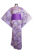 Beautiful Japanese Kimono Yukata with a light purple base color contrasted with purple flowers