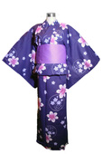 Beautiful Japanese Kimono Yukata with a purple base color contrasting the large pink floral design