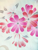 Beautiful Japanese Kimono Yukata with a white base color contrasting the pink and red floral design