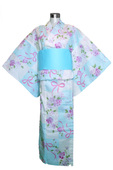 Beautiful Japanese Kimono Yukata with a white base color contrasting the blue and purple floral design