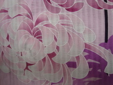 This lavish light purple kimono yukata has a modern black stripes which sets it apart from a more traditional style. With several large gorgeous flower patterns creates a modern distinctive appearence.
