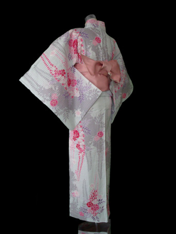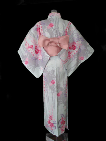 This pure white and grey Kimono Yukata has beautiful flower pattern that is detailed yet clean and uncluttered. Excellent choice for a minimial sophisticated appearence.