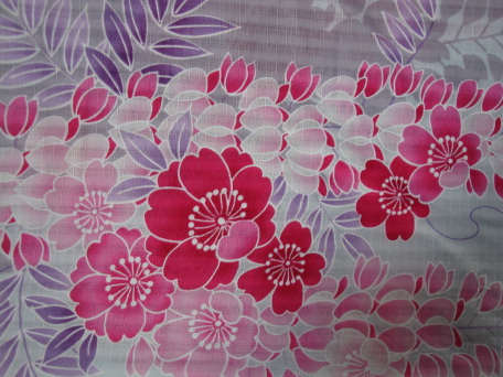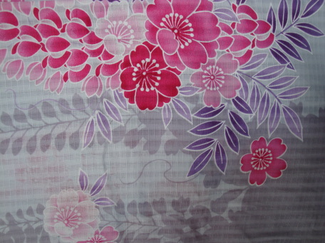 淡いグレー地に、ピンクの桜の模様の浴衣です。グレーと桜の花のコントラストが美しく、モダンで清楚な印象に!