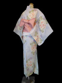 Blue & White flowers Yukata + Belt (y037b) |