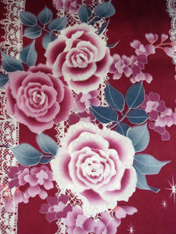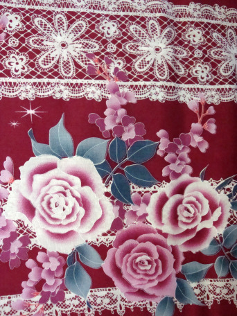 Beautifully crafted black Kimono Yukata has gorgeous detailed white lace pattern set against large vertical stripped background. Finished with beautiful white rose patterns. Perfect for a detailed and complex appearance.