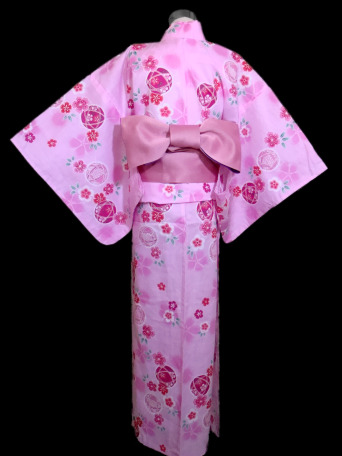 Bright pink Kimono Yukata has dark pink sakura flower patterns and more subtle pastel pink flower patterns that are beautifully placed amongst the green leafs. This is bright pink yukata, for that super cute appearance