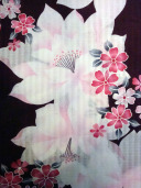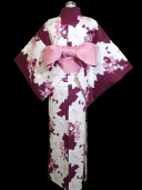 Stunning maroon red kimono yukata with large beautiful white flower pattern that is contrasted by small delicate pink sakura flowers. A gorgeous yukata for all occasions.