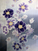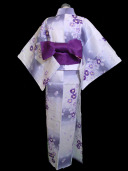 Beautiful white and light purple kimono yukata delicately decorated with small purple and white sakura flowers. The light purple gradients against the white base color create a cool and refreshing appearance.