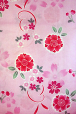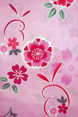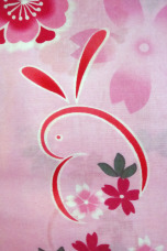 This bright Pink base Kimono yukata has beautiful red cherry blossom flowers and cute bunny rabbit patterns. The touch of green petals perfectly contrasts the cute pink appearance.
