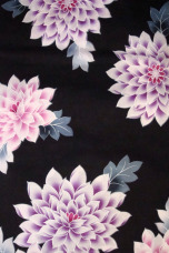 Stunning black kimono yukata has large beautiful flower design placed perfectly against the light green petals. A wonderful yukata with a bright and attractive floral design.