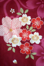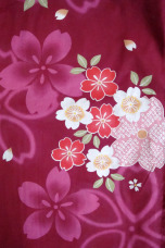 Beautiful bold red traditional Japanese kimono yukata imported directly from Japan, has a bright red base color with subtle cherry blossom base. This is contrasted beautifully against the small cute red and white sakura flower designs.