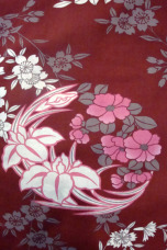 Gorgeous dark red traditional Japanese Kimono Yukata, imported directly from Japan is finely detailed white, pink and grey sakura flower pattern designs.
