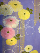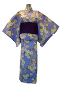 Beautiful light purple Japanese Kimono Yukata imported directly from Japan has cute yellow flowers with olive green leafs.