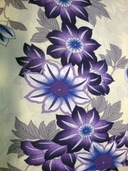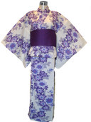 Wonderful white traditional Japanese Kimono Yukata imported directly from japan has a clean white base color that is beautiful contrasted with cute purple and blue flowers.