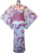Beautiful white traditional Japanese Kimono Yukata imported directly from Japan has a cute white base color with small pink and purple flower patterns.