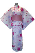 Beautiful light Japanese Kimono Yukata has wonderful pastel pink base color contrasted with a pink and white floral design.