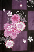 Beautiful Japanese Kimono Yukata has wonderful purple and black checkered base color contrasted with a purple floral design.