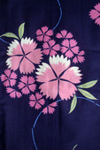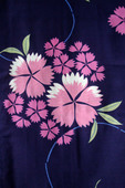 Beautiful Japanese Kimono Yukata has wonderful dark blue base color contrasted with a cute pink floral design.