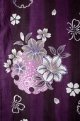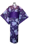 Beautiful Japanese Kimono Yukata has wonderful purple striped base color contrasted with a cute purple & grey floral design.