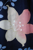 Beautiful Japanese Kimono Yukata has wonderful dark blue base color contrasted with a large pink & white floral design.