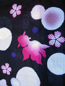 Beautiful Japanese Kimono Yukata with black base color with bright pink goldfish and white ball design