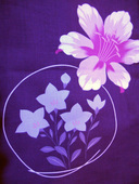 Beautiful Japanese Kimono Yukata with a purple base color contrasting the large pink floral design
