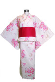 Beautiful Japanese Kimono Yukata with a white base color contrasting the pink and red floral design